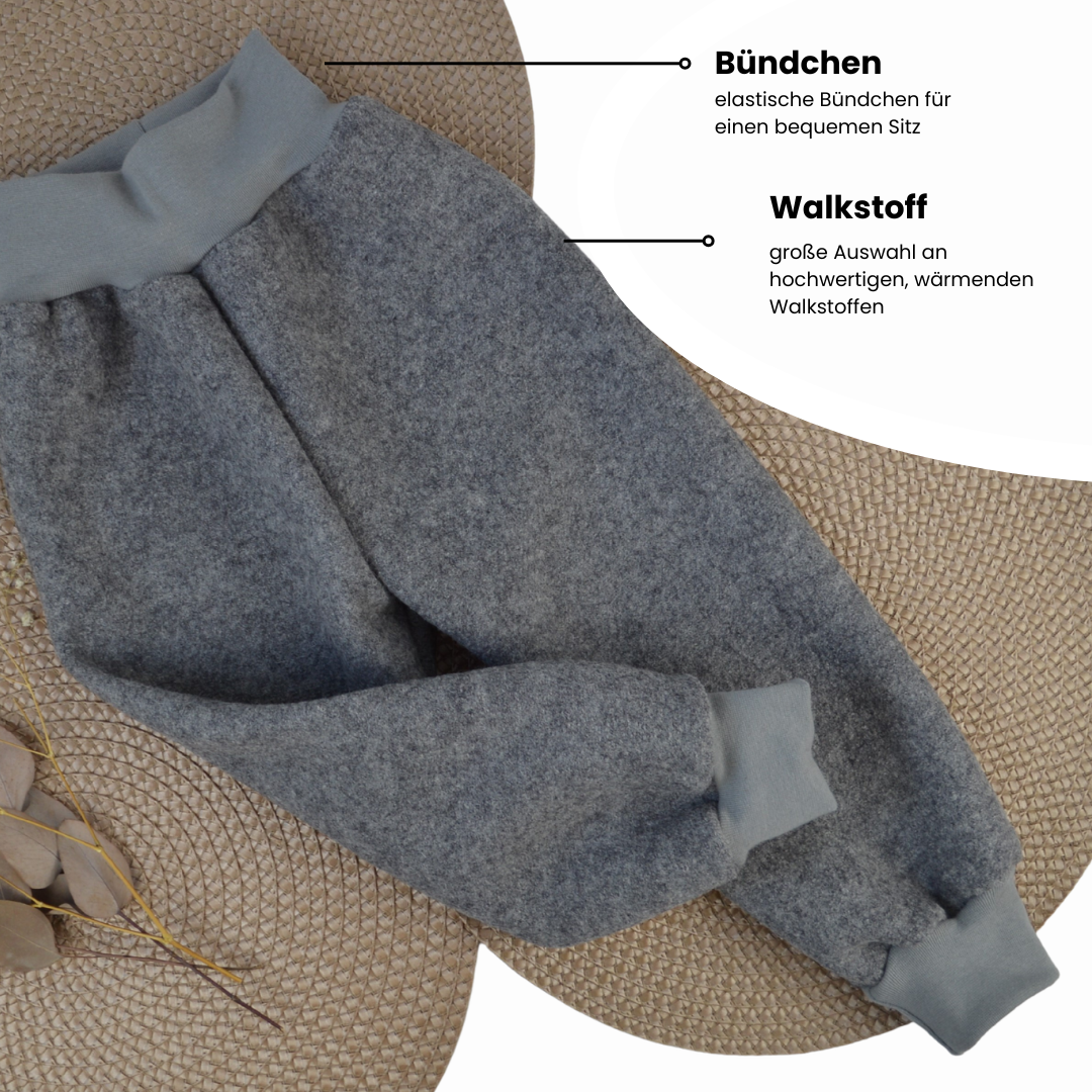 Alle Bilder sind Designbeispiele. Deine Walkhose fertige ich individuell an – passend für Junge oder Mädchen.