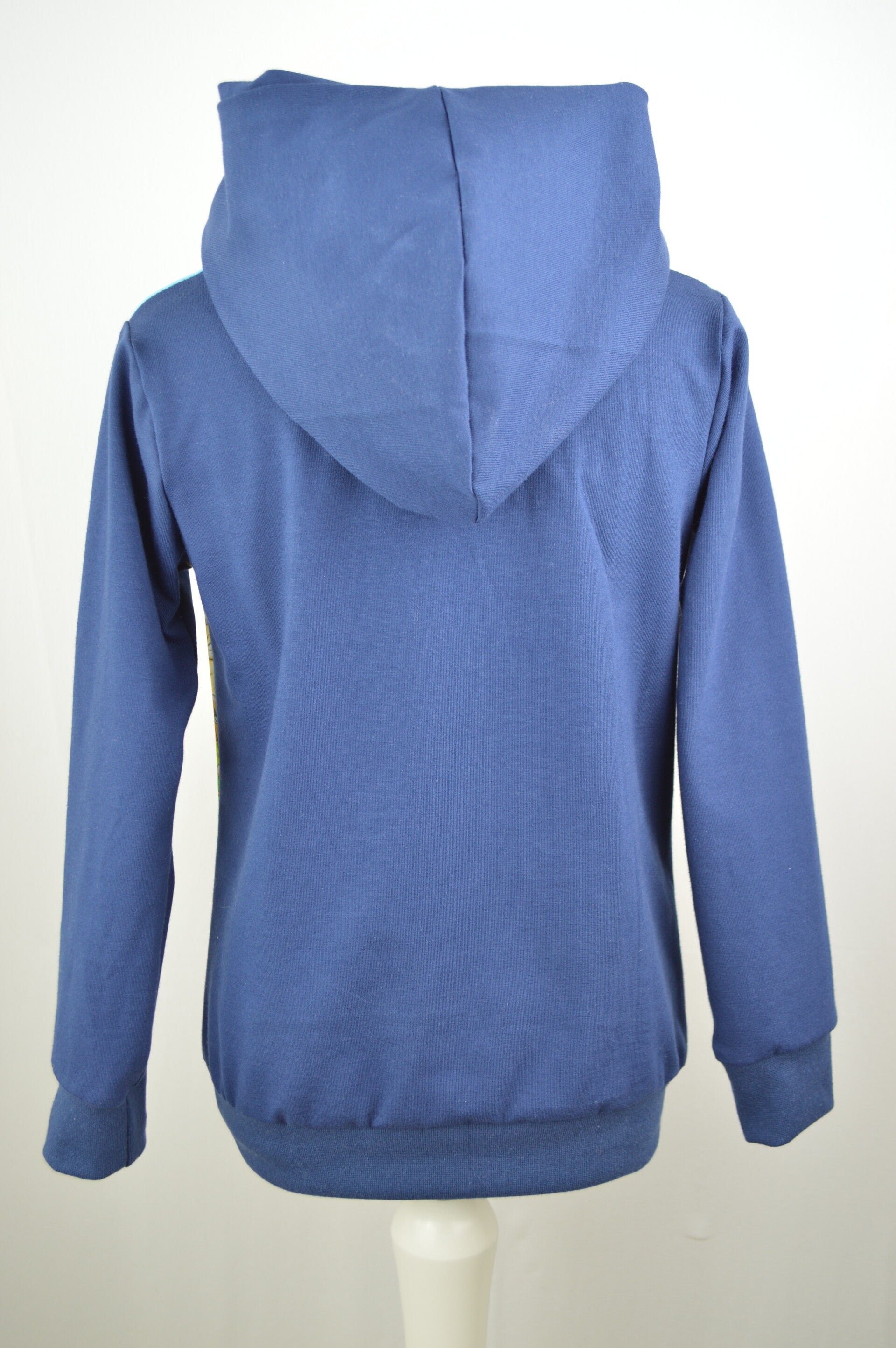 Dieser coole Hoodie (auch als Pullover bestellbar) wird aus deinem Wunschstoff (Ärmel, Rücken und Kapuze) genäht.