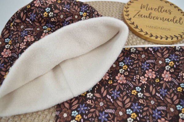 Die Beanie-Loop Set sind innen komplett doppellagig mit weichem Baumwolljersey gefüttert, sodass dein kleiner Schatz schön warm am Kopf ist. Außen süßer Musterstoff, innen unifarbend.