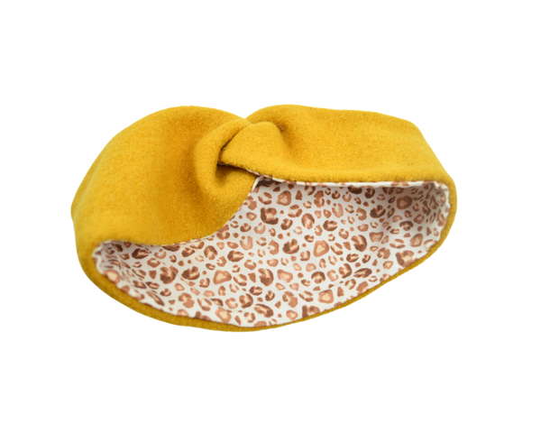 Süßes Stirnband aus Walk mit Innenstoff aus Jersey.