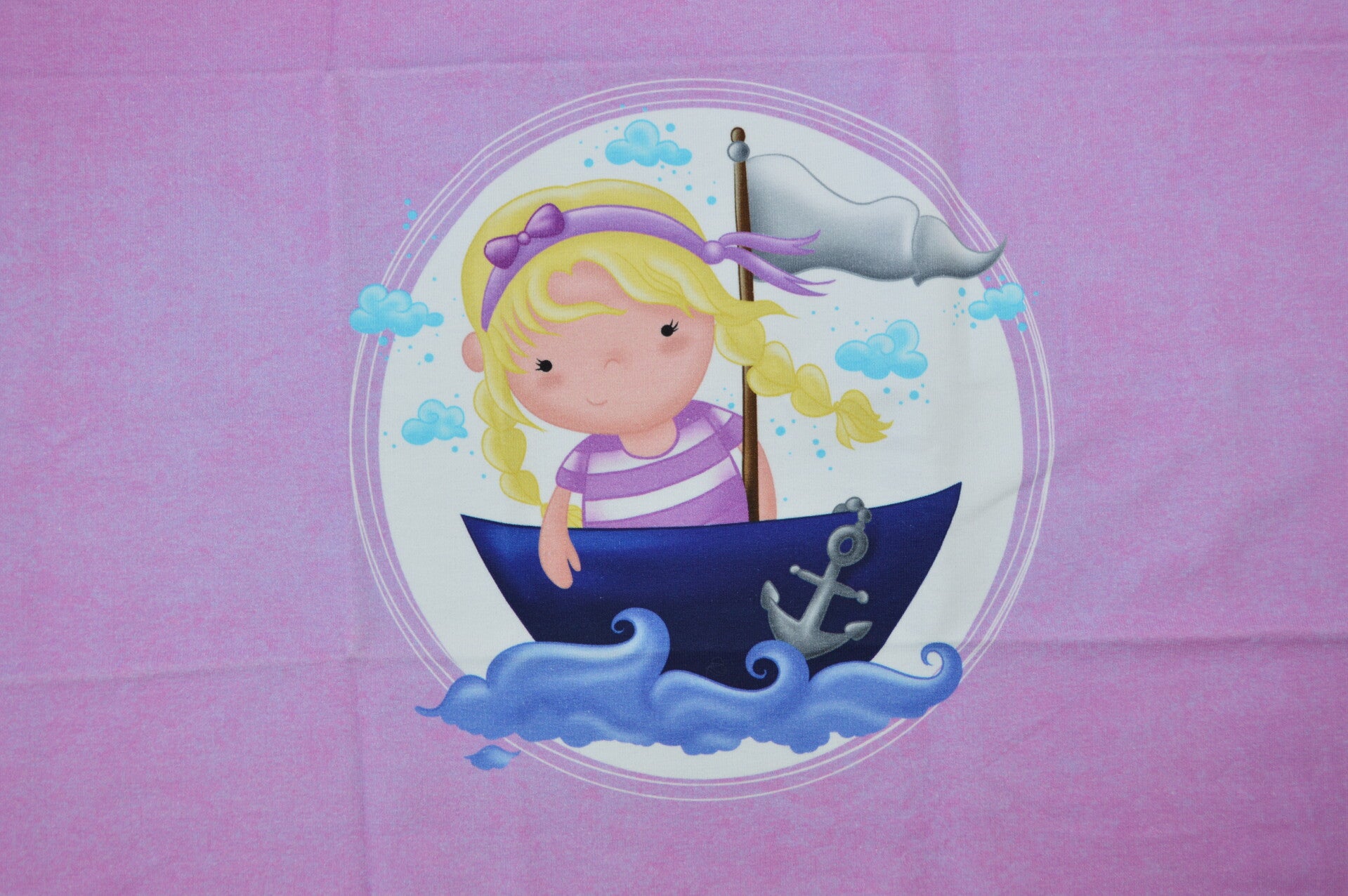 Panel Baumwolljersey Mädchen im Boot 46x48 cm