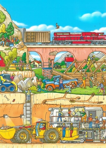 Panel Baumwolljersey Wimmelbuch Baustelle 54x50 cm