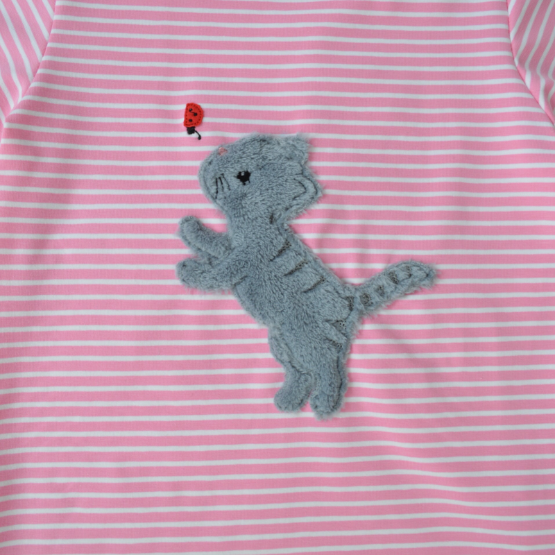 Unser liebevoll handgemachtes Langarmshirt ist ein echtes Highlight in jedem Kinderkleiderschrank! Die niedliche Katzenapplikation sorgt garantiert für leuchtende Kinderaugen.