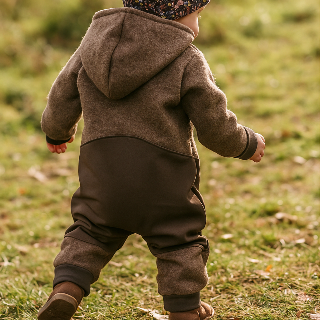 Ein hochwertiger Walkoverall mit Softshell-Verstärkung für Babys und Kleinkinder ist ein unverzichtbares Kleidungsstück – ideal für Herbst, Winter und Frühling. Unser mitwachsender Walkanzug begleitet dein Kind zuverlässig bei jedem Outdoor-Abenteuer.